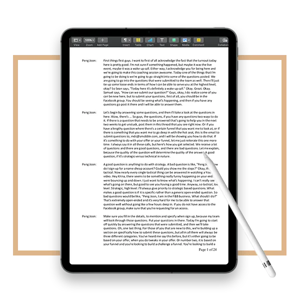 ALL the scripts for your Webinar, including: Open, Content, Offer, and Close. You'll leverage our proven model that provides tremendous value, that closes like crazy, plus follow along for a perfect, smooth delivery every single time!