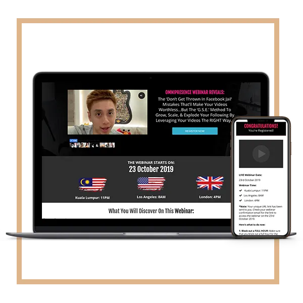 You'll have your 'Biggest Business Asset' created, including: ‘Registration’ Page, ‘Checkout’ Page, ‘Thank You’ Page, AND your ‘Live Webinar’ Page created... so you can monetize all the traffic you'll be generating!